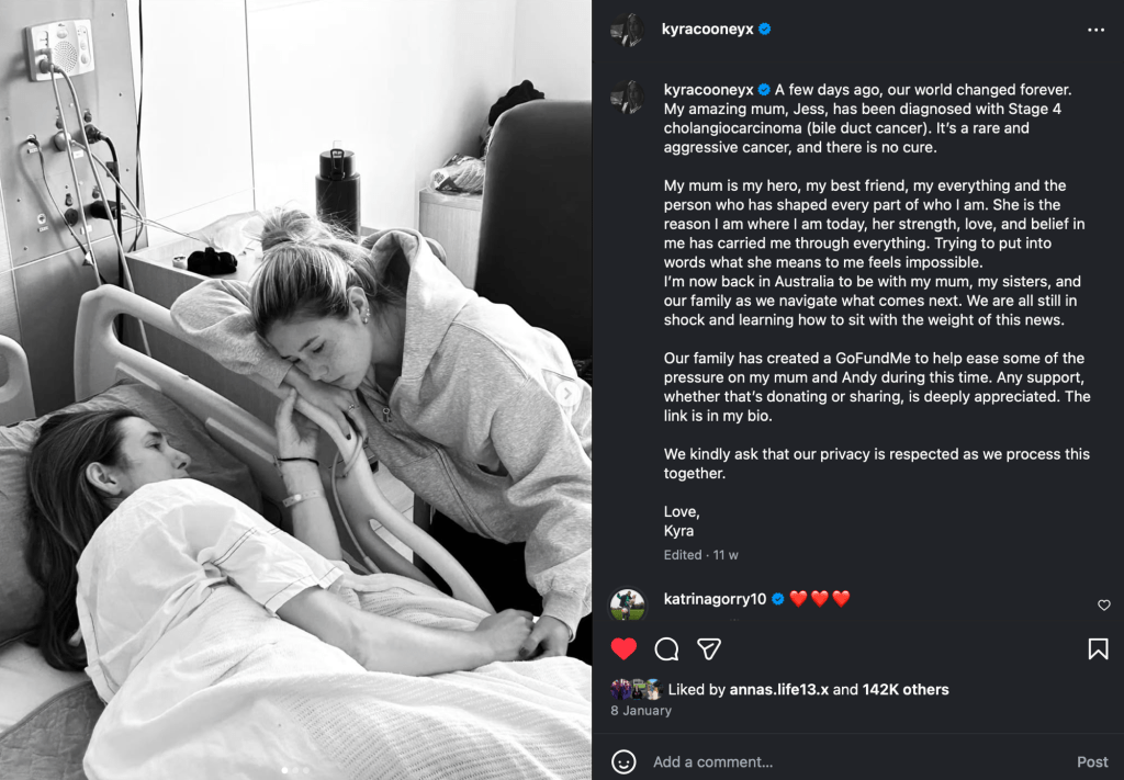 Following the news of her mums diagnosis, both players and fans came together to show their support. Ahead of Arsenal’s league game against Manchester United, her teammates sported her 32 jersey in their warmup, while fans arrived with signs of support reading ‘We love you Kyra and Jess’. A standing ovation was also held in the 32nd minute, truly bringing together the ‘One Arsenal’ spirit of community, support and connection.