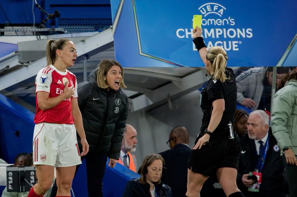 Things went from bad to worse for the French manager, as a mistimed throw in meant that she stepped onto the pitch, meaning she received a second yellow card and was subsequently sent off in stoppage time. Following the game, Bompastor expressed her frustration at the decision following the hair pull, criticising the refereeing and the decision not to get VAR involved.